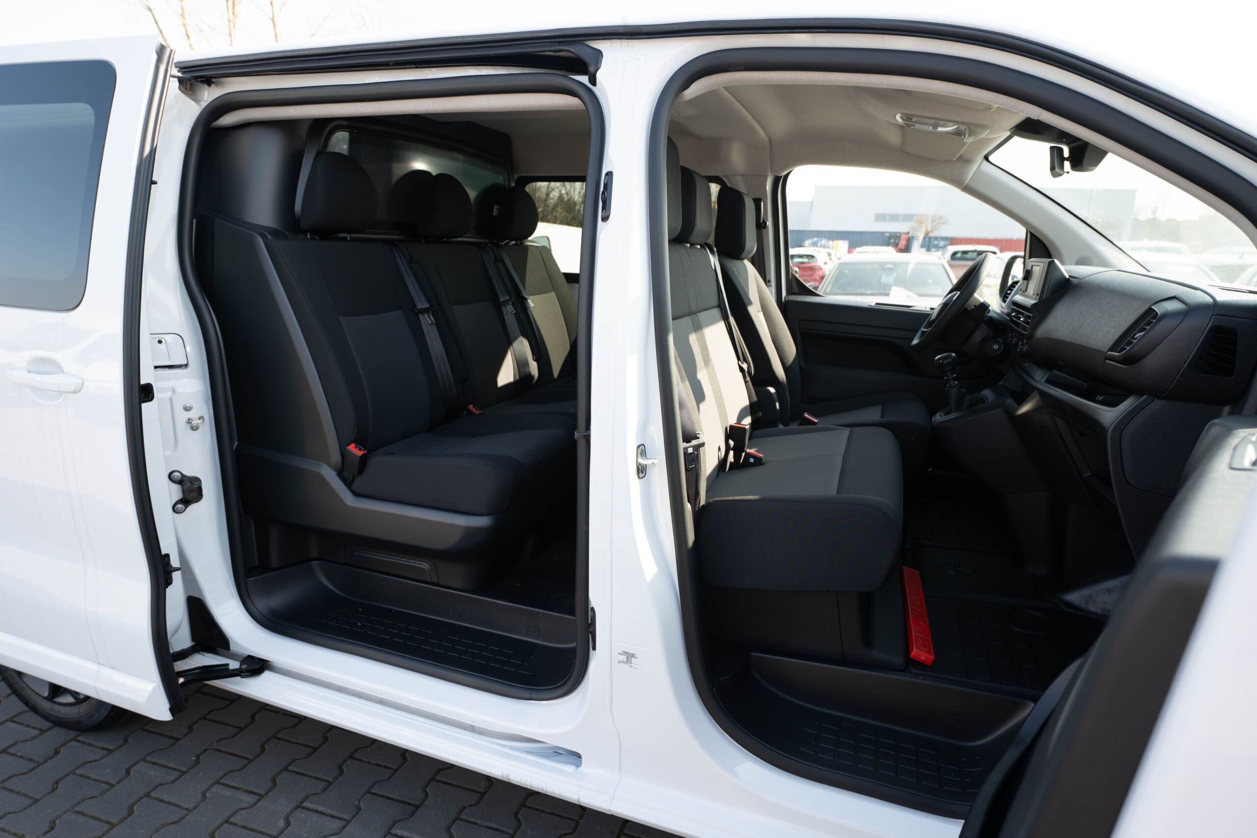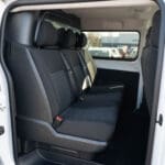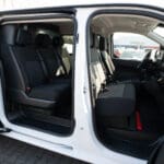Fotel kierowcy z podłokietnikiem, dwumiejscowa kanapa pasażerów ze schowkiem pod siedziskiem,