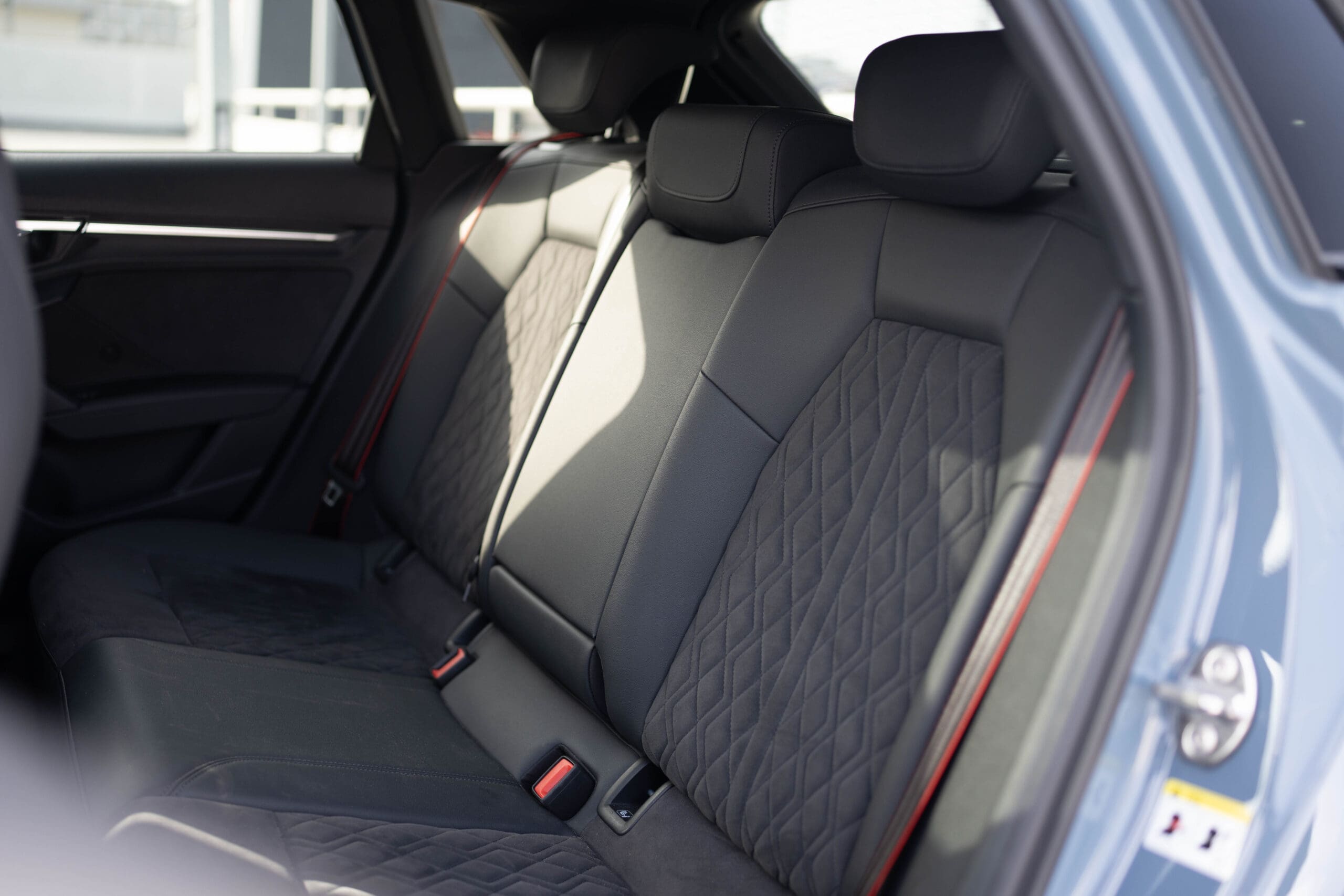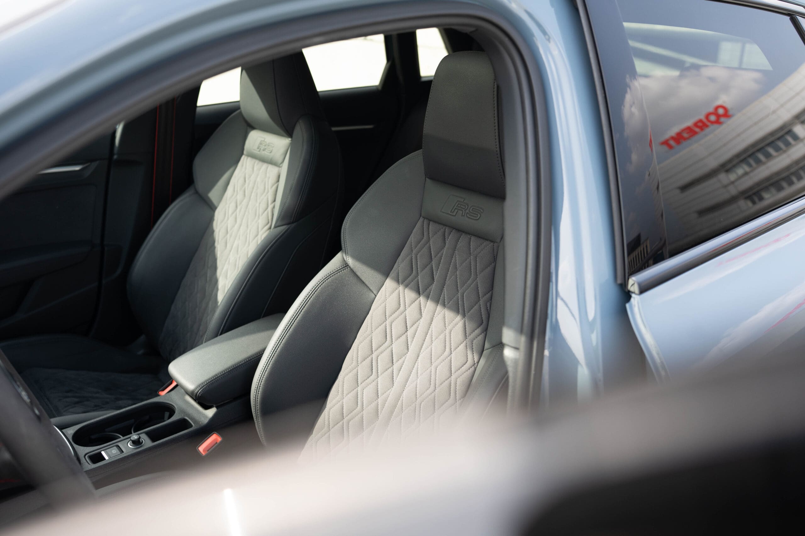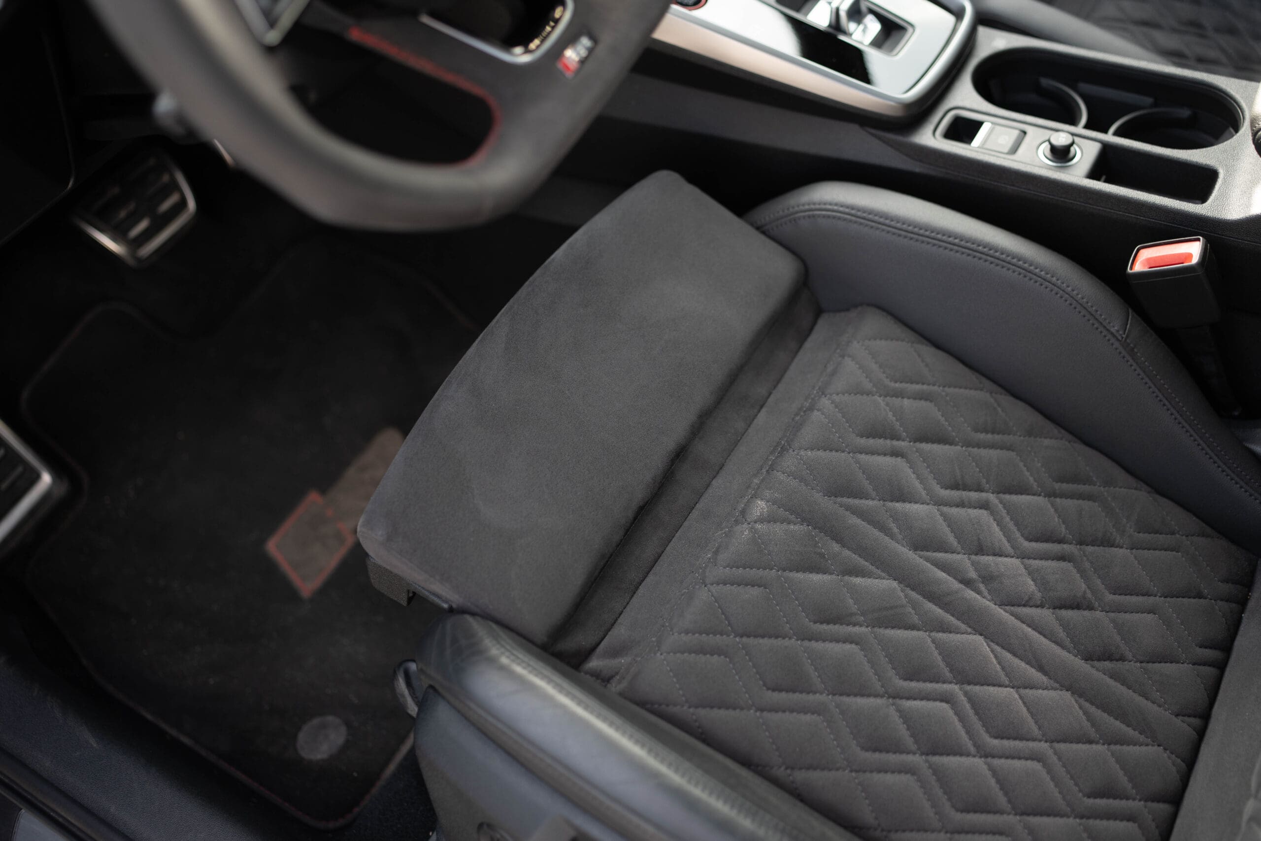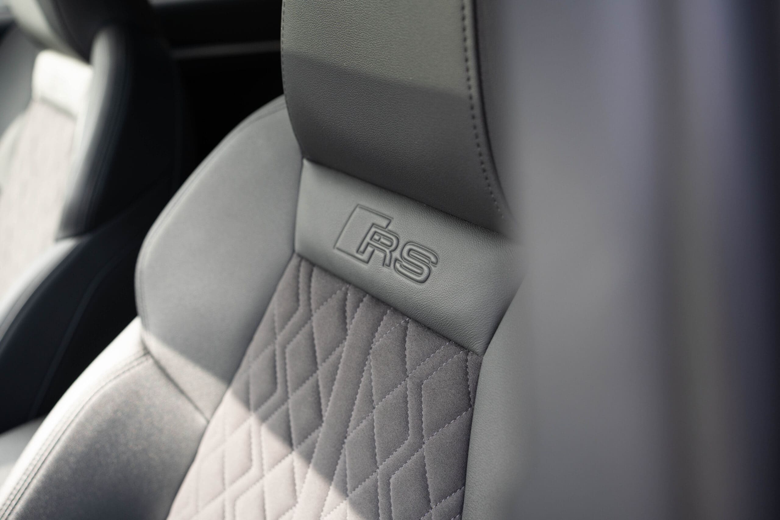 Tapicerka: Kombinacja mikrofibra Dinamica/skóra ekologiczna z pikowaniem w romby i logo RS