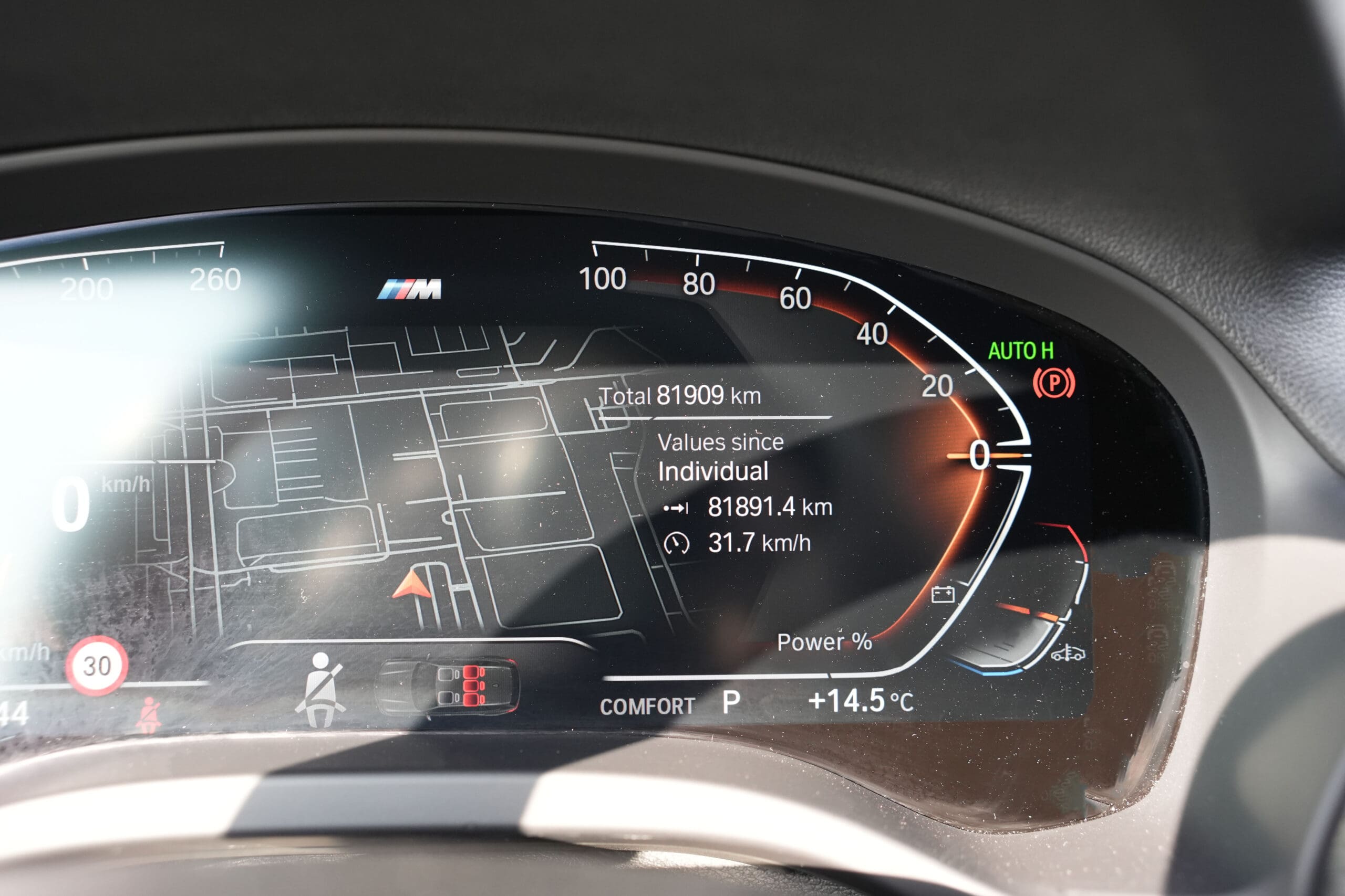 Auto wyposażone w unikatowe logo BMW M Heritage (50 Jahre M) – klasyczny emblemat nawiązujący do sportowego dziedzictwa marki, stosowany w limitowanych wersjach i modelach z okazji 50-lecia działu BMW M. Podkreśla wyjątkowy charakter auta i jego powiązanie z motorsportem.